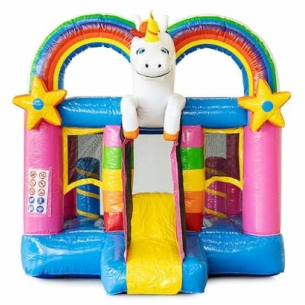 Speciaal voor de kleinere kinderen zijn deze gave Mini springkasteel van Attraxi te huur. Deze compacte en lichtgewicht kussens zijn ideaal voor in je voor- of achtertuin, een oprit of zelfs binnen in de garage. Het Bounce Unicorn springkasteel heeft een leuke full-color print erop. De wanden en handig geplaatste netten zorgen voor extra veiligheid en ruimte voor toezicht. Op het springvlak zijn obstakels geplaatst en er is een coole glijbaan in het midden. Met het Bounce Unicorn springkasteel haal je een fantasierijk en vrolijk thema binnen waar elk kind wel blij van wordt. Wacht dus niet te lang en huur snel het Unicorn Thema springkasteel!